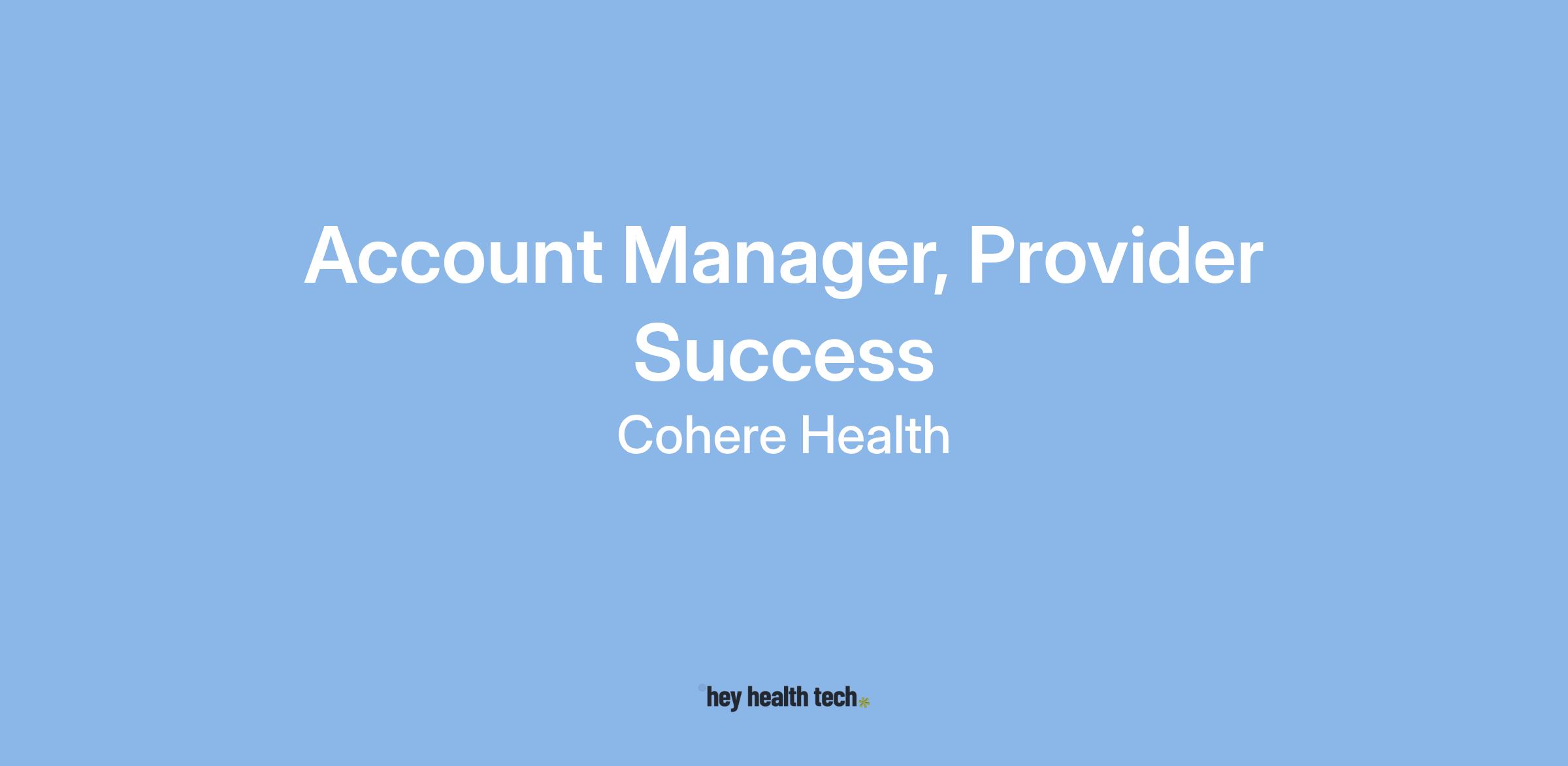 Cohere’s Provider & User Management Team is responsible for ensuring consistent delivery of a proactive, supportive, and partner-oriented experience to an assigned portfolio of providers/practices across our health plan-clients’ networks. The Account Manager, Provider Success position is a crucial role in our organization.