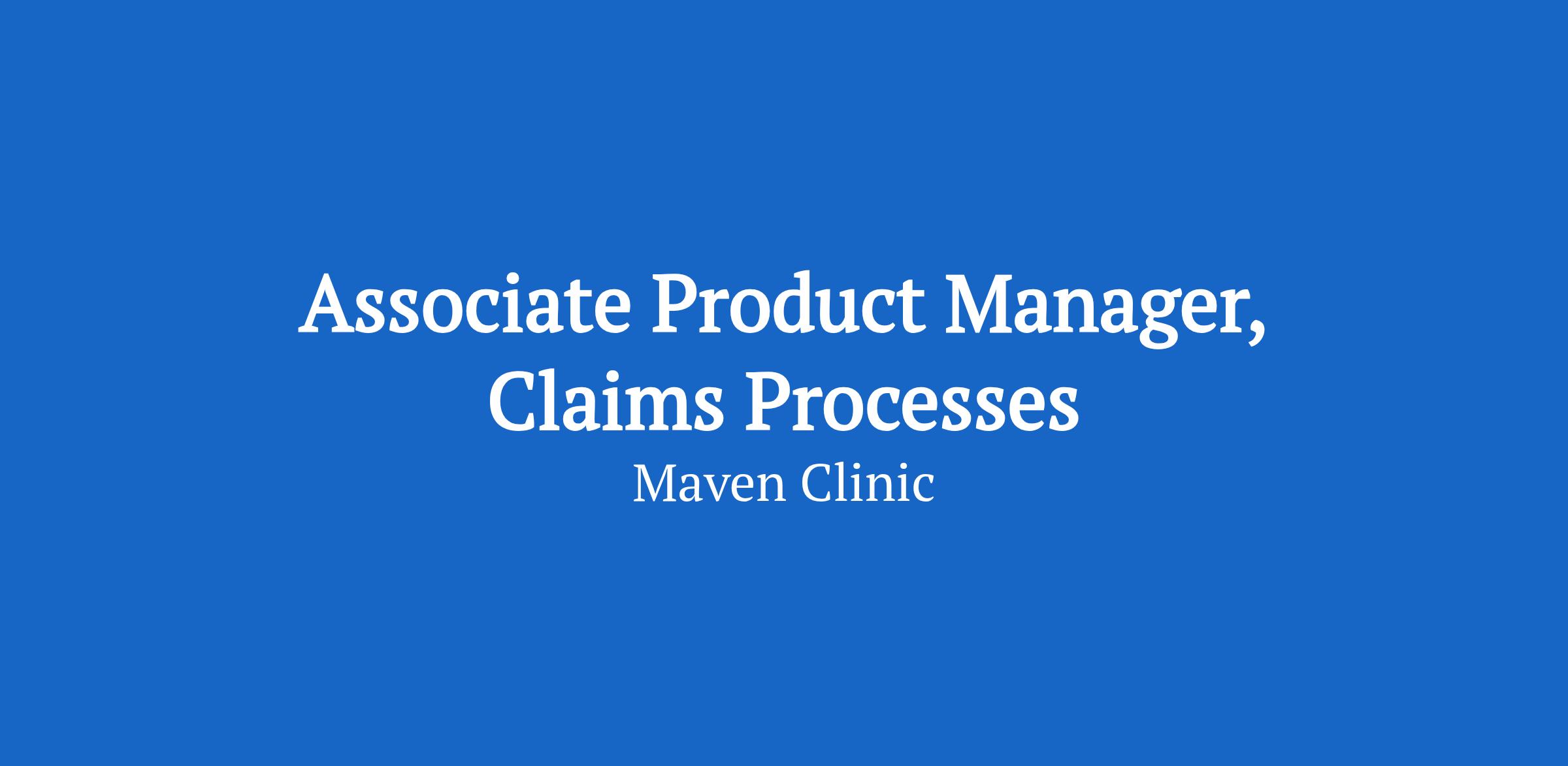 Maven’s product team is growing quickly to accelerate our mission of driving better health outcomes for our members through a human-centered product experience. As Associate Product Manager for Claims Processes, you will deeply understand business, client and member needs and design innovative solutions that create ongoing value and drive meaningful retention.