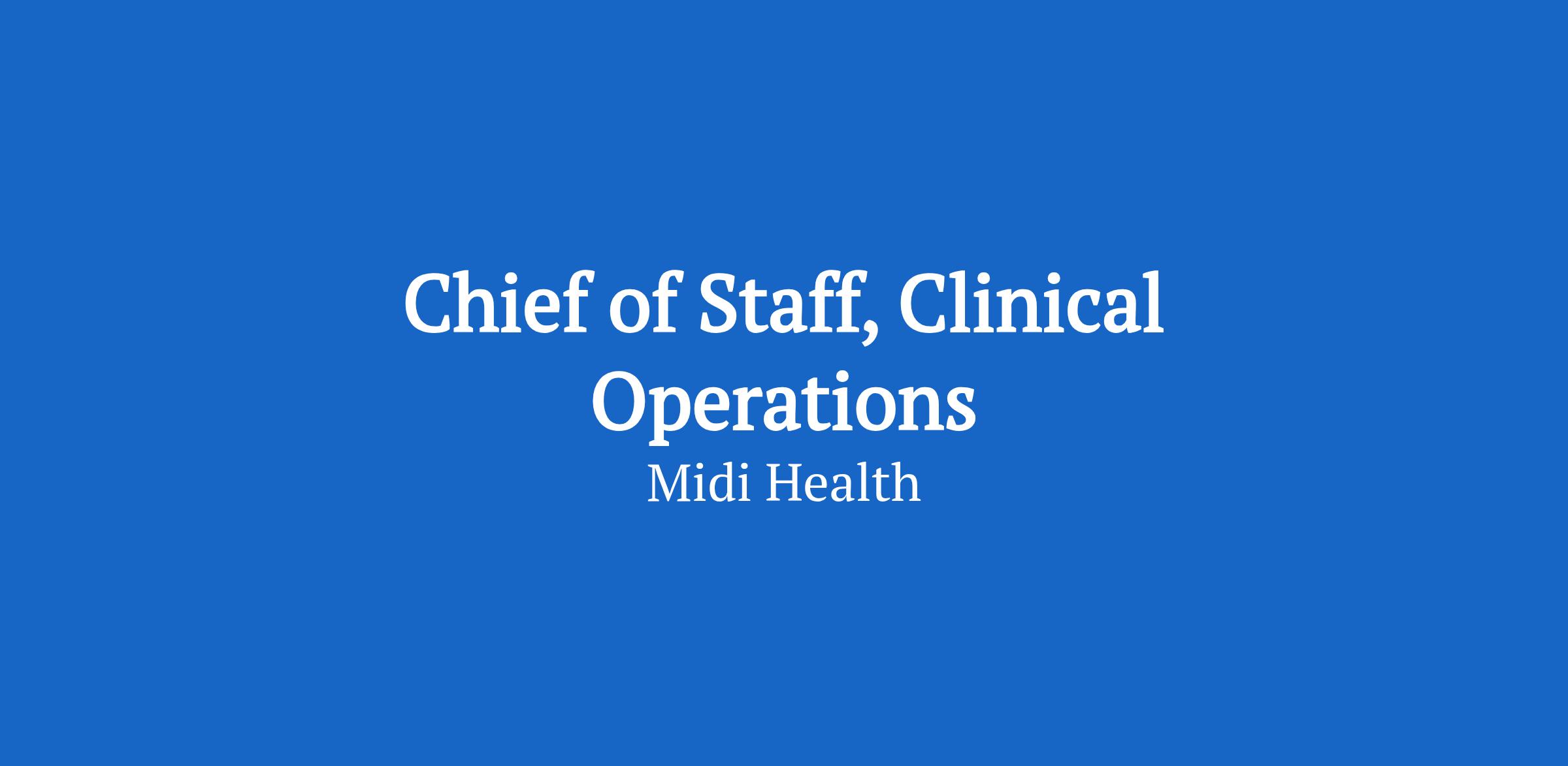 Midi is seeking a Chief of Staff, Clinical Operations, reporting to the Senior Vice President, Clinical Operations. This role drives cross-functional execution and runs the operating cadence that keeps priorities moving from decision to delivery. You’ll lead high-impact initiatives and build the visibility and accountability needed to scale care delivery.