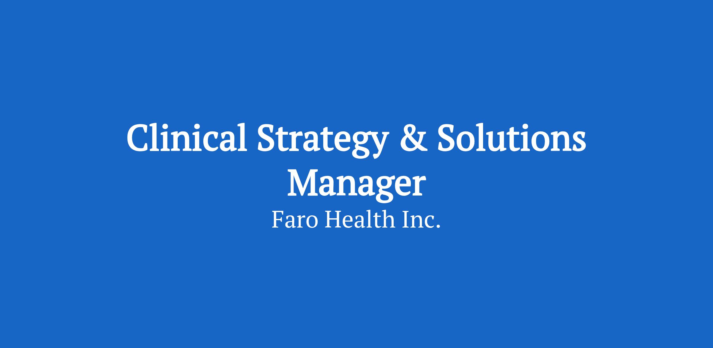 The Clinical Strategy & Solutions Manager is a key contributor to customer success and platform excellence at Faro Health. Drawing on deep clinical operations expertise, you'll serve as a trusted partner to our customers, help them get the most out of the Faro Study Designer tools and features, and play an active role in shaping the clinical intelligence that powers our products.