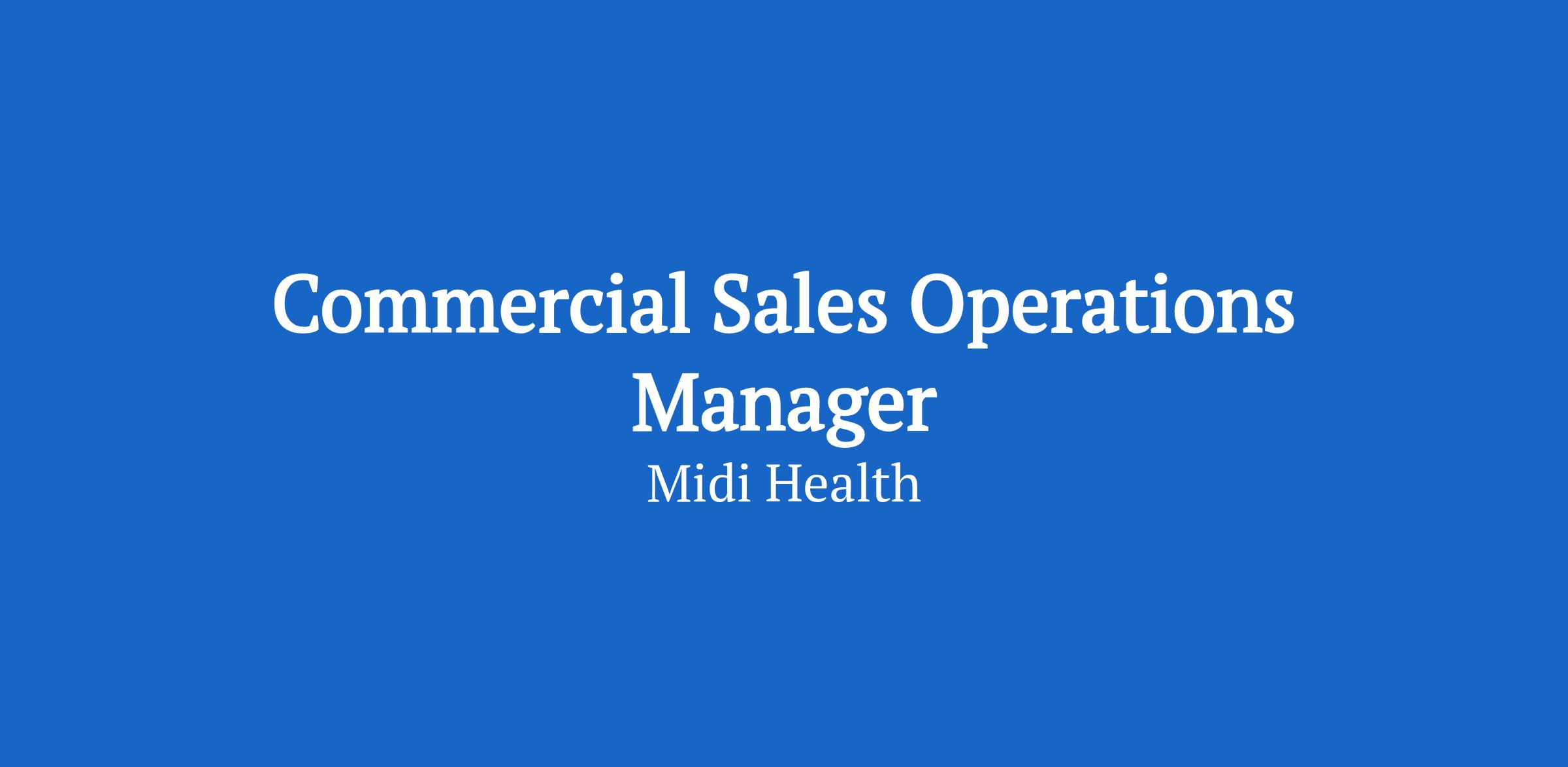 Midi Health is searching for a Commercial Sales Operations Manager to optimize the performance and operations of our Commercial organization, including our Payer, Employer, and Health Systems sales teams.