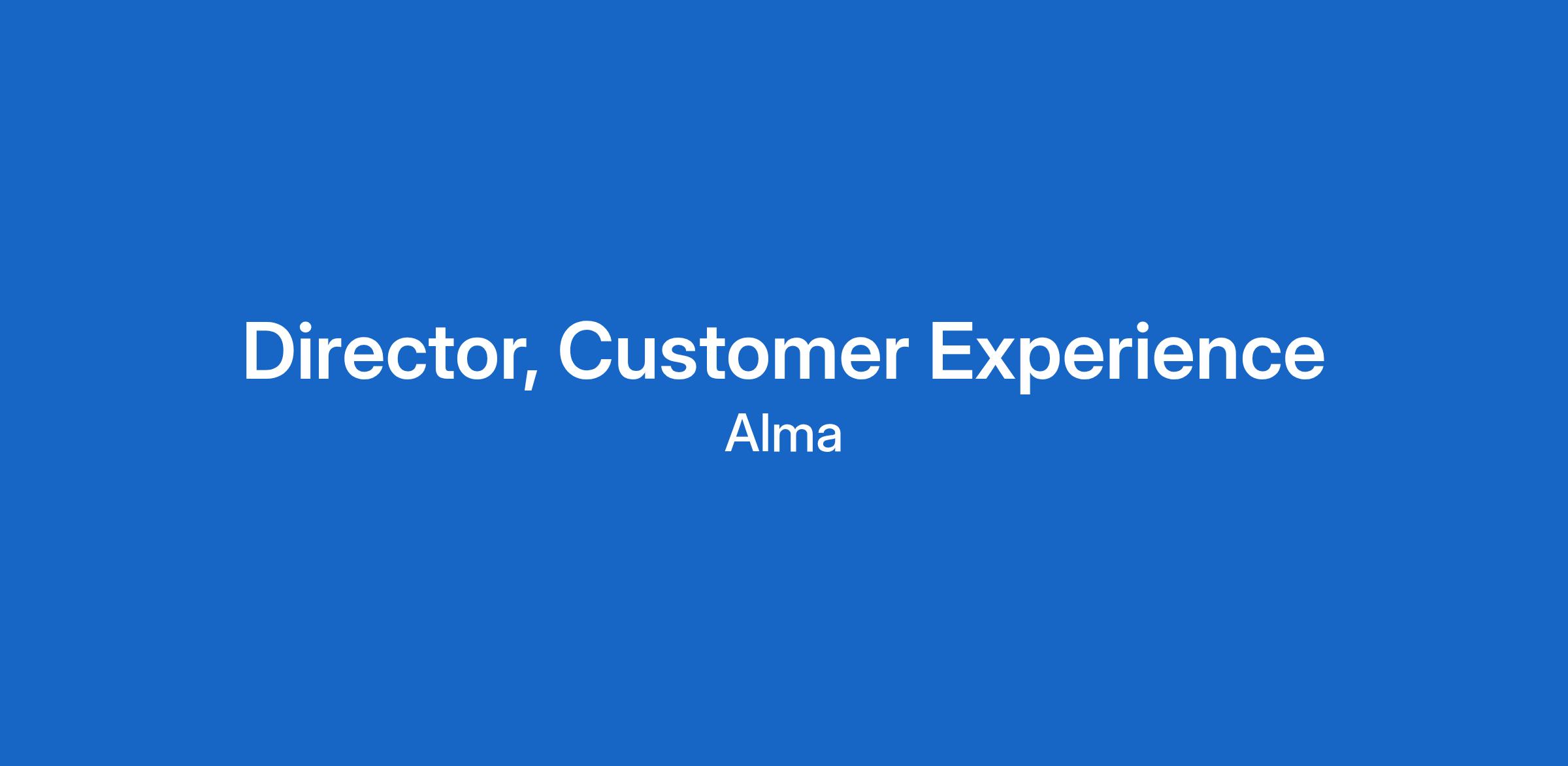 As Alma’s Director, Customer Experience, you’ll lead our team through our next stage of growth, as we scale and evolve into a best-in-class service for our network of providers and their clients. Leading our frontline teams, you will equip and empower them to deliver customer-centric support at every touchpoint and elevate their insights cross-functionally—across Product, Design, and Marketing—to drive continuous improvement of our products and services.