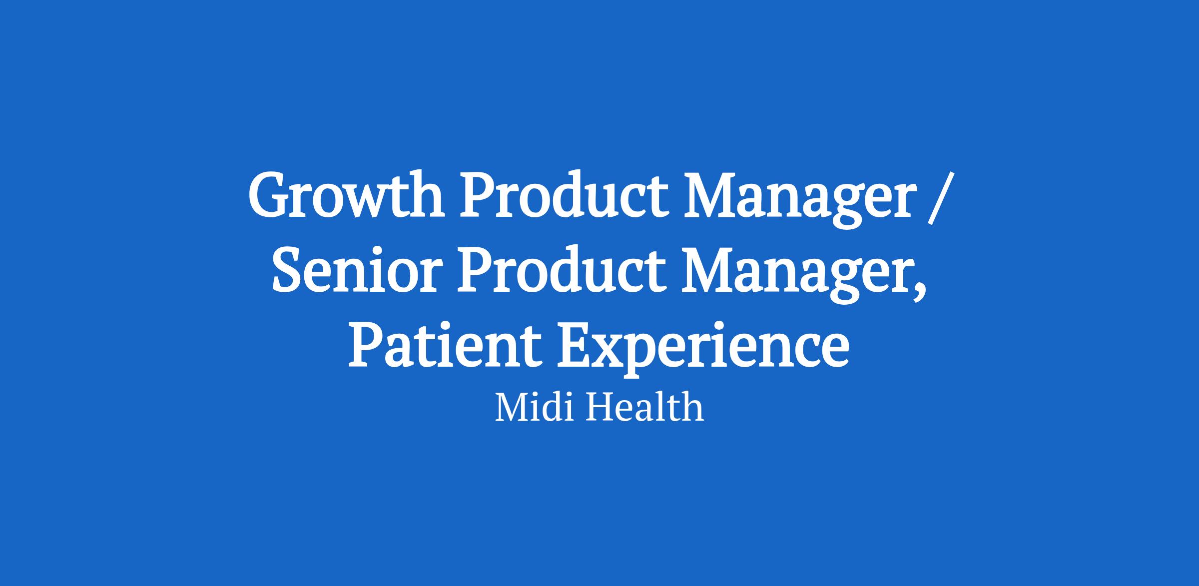 Midi is seeking a Growth Product Manager / Senior Product Manager, Patient Experience whoâs mission will be conversion: ensuring every woman who finds Midi feels an immediate "aha!" moment. You will lead the charge in making sure every woman who finds us moves seamlessly from discovery to her first clinical visit and into a lifelong health partnership.