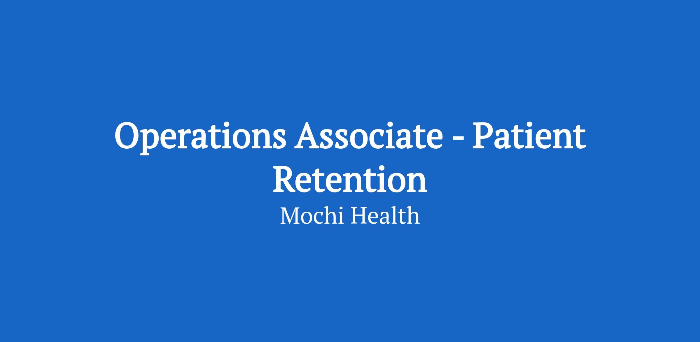 Join a team that's rebuilding healthcare from the patient up. At Mochi Health, you'll work alongside people who value bold thinking, inclusive collaboration, and getting meaningful work into the world. If you want to do the most impactful work of your career, this is where to do it.