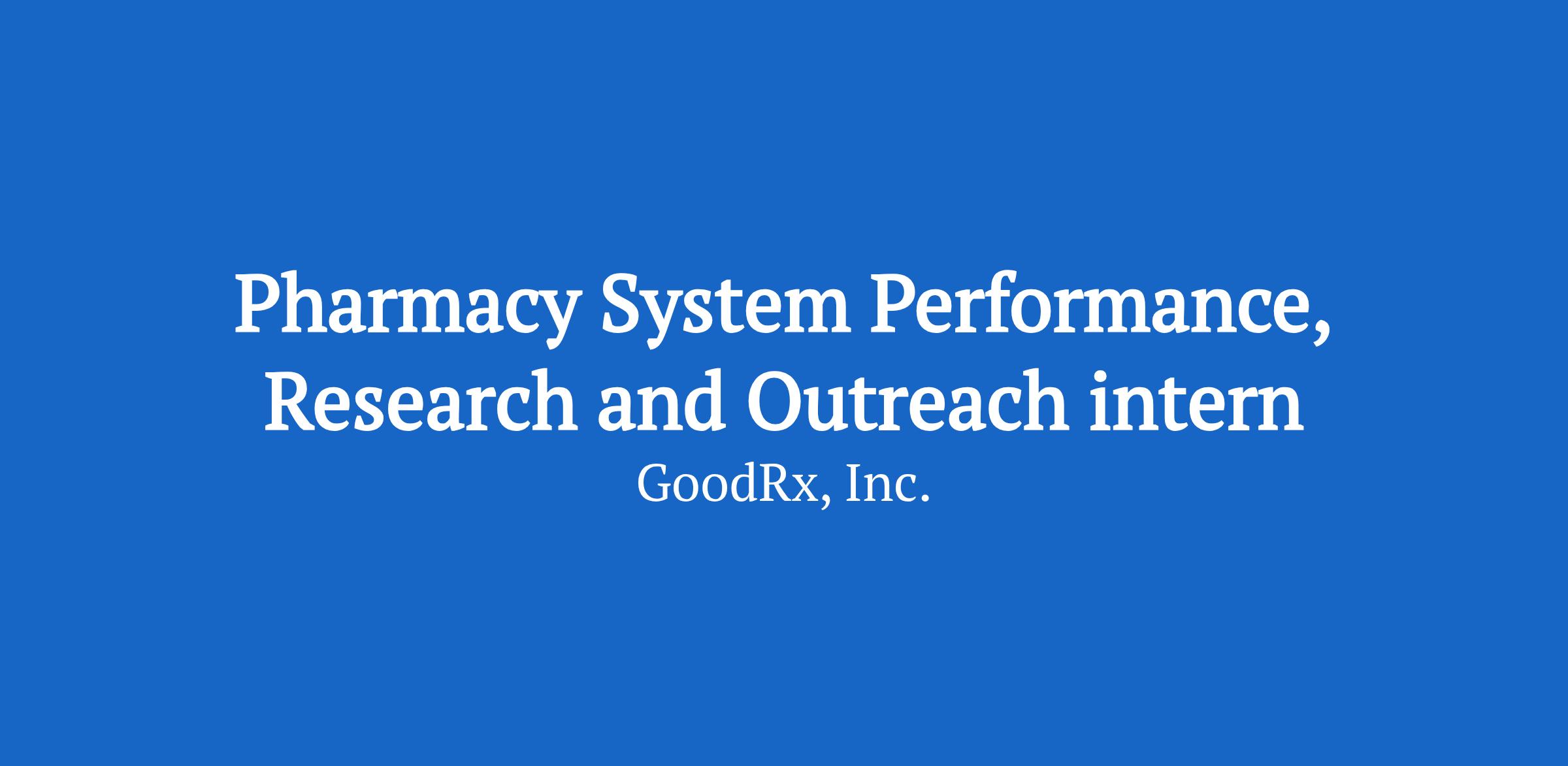 About the Role: GoodRx is looking for a Pharmacy System Performance, Research and Outreach intern.