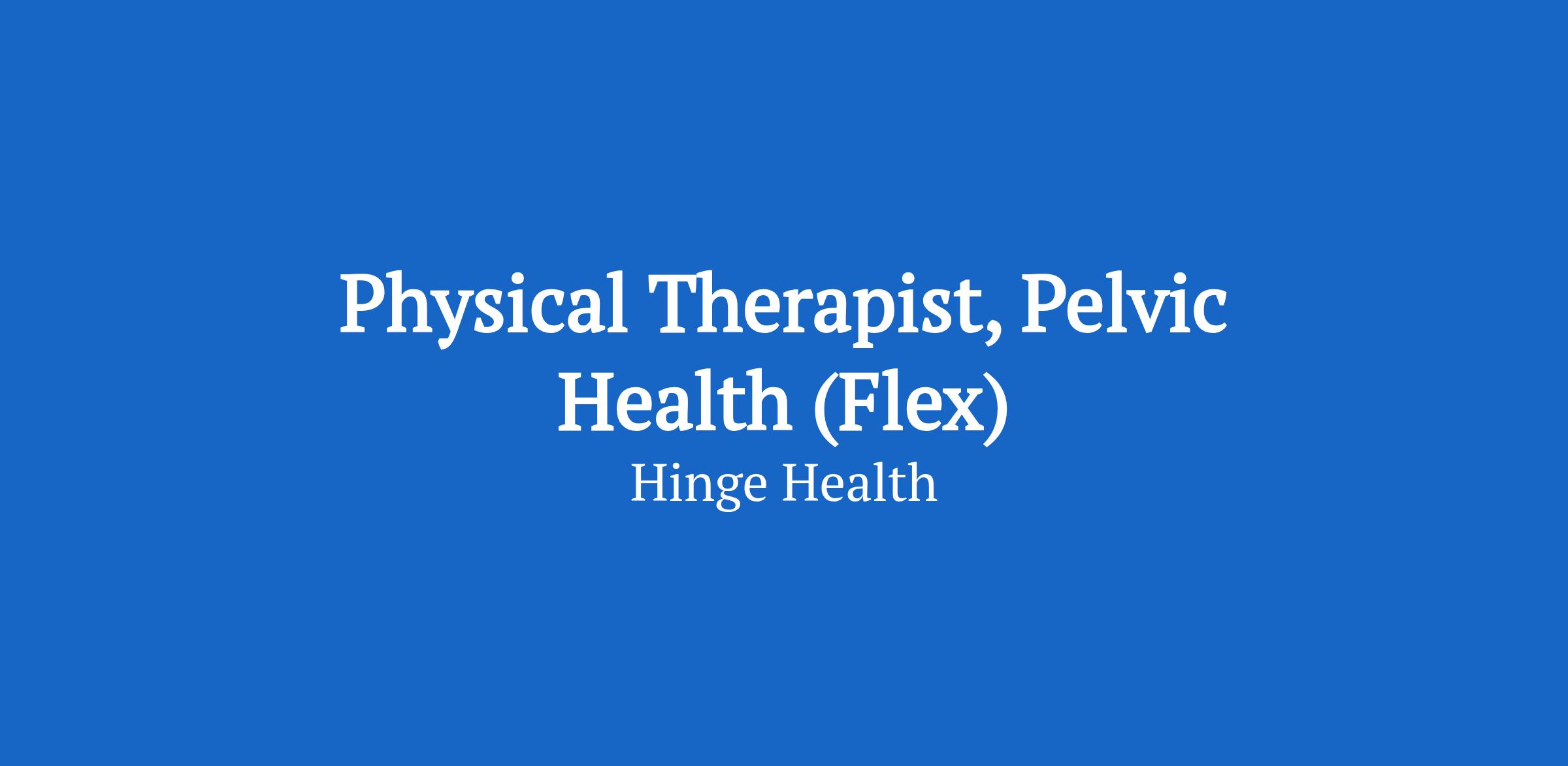 Physical therapists are the backbone of the comprehensive clinical care team at Hinge Health. Hinge Health Physical Therapists utilize their clinical expertise and knowledge of pain science to deliver care for a large number of patients across the MSK spectrum, including pelvic health, via telehealth video visits and in-app messaging. We believe in providing the best patient-centered care by applying the Biopsychosocial model, evidence-informed practice, and innovative thinking with technology to help patients reduce pain and achieve meaningful outcomes. Through our technology-first platform, Hinge Health physical therapists improve the lives of many at scale. You will work with a diverse set of members within a team of high performing, inclusive clinicians.