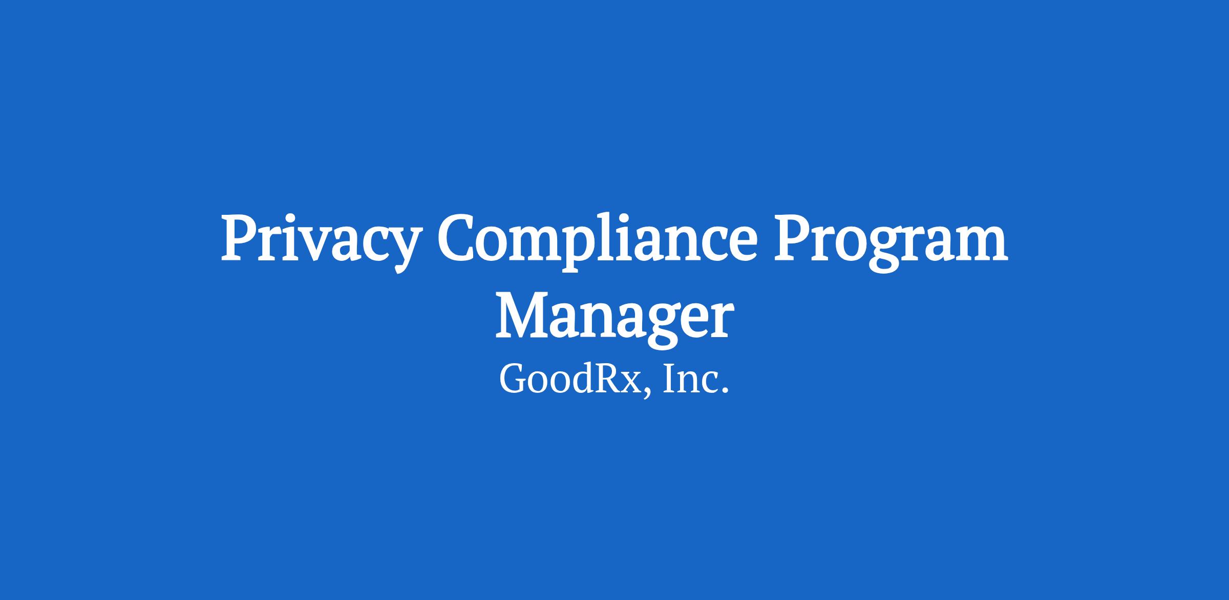As the Privacy Compliance Program Manager, you will report to the Director, Privacy Compliance Programs, and collaborate and work cross-functionally across multiple teams, including product, marketing and data teams. Your work will be integral to ensuring GoodRx’s commitment to data privacy.