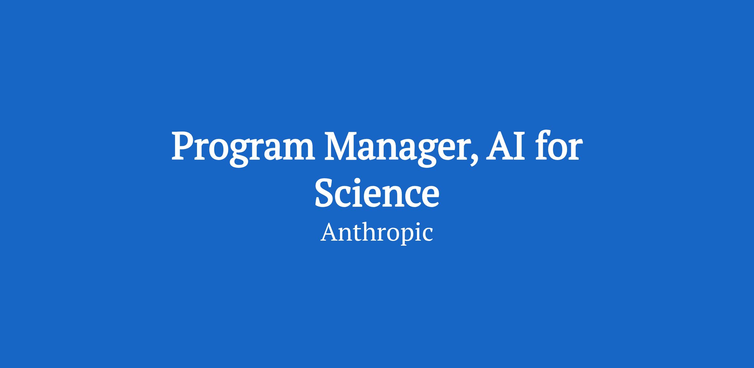 We're looking for a Program Manager to grow our AI for Science Program. You'll build and manage partnerships with individual labs from around the world. This program is the primary way that Anthropic’s life sciences efforts works with individual labs that have new and innovative ideas for how Claude can contribute to a growing set of scientific domains.