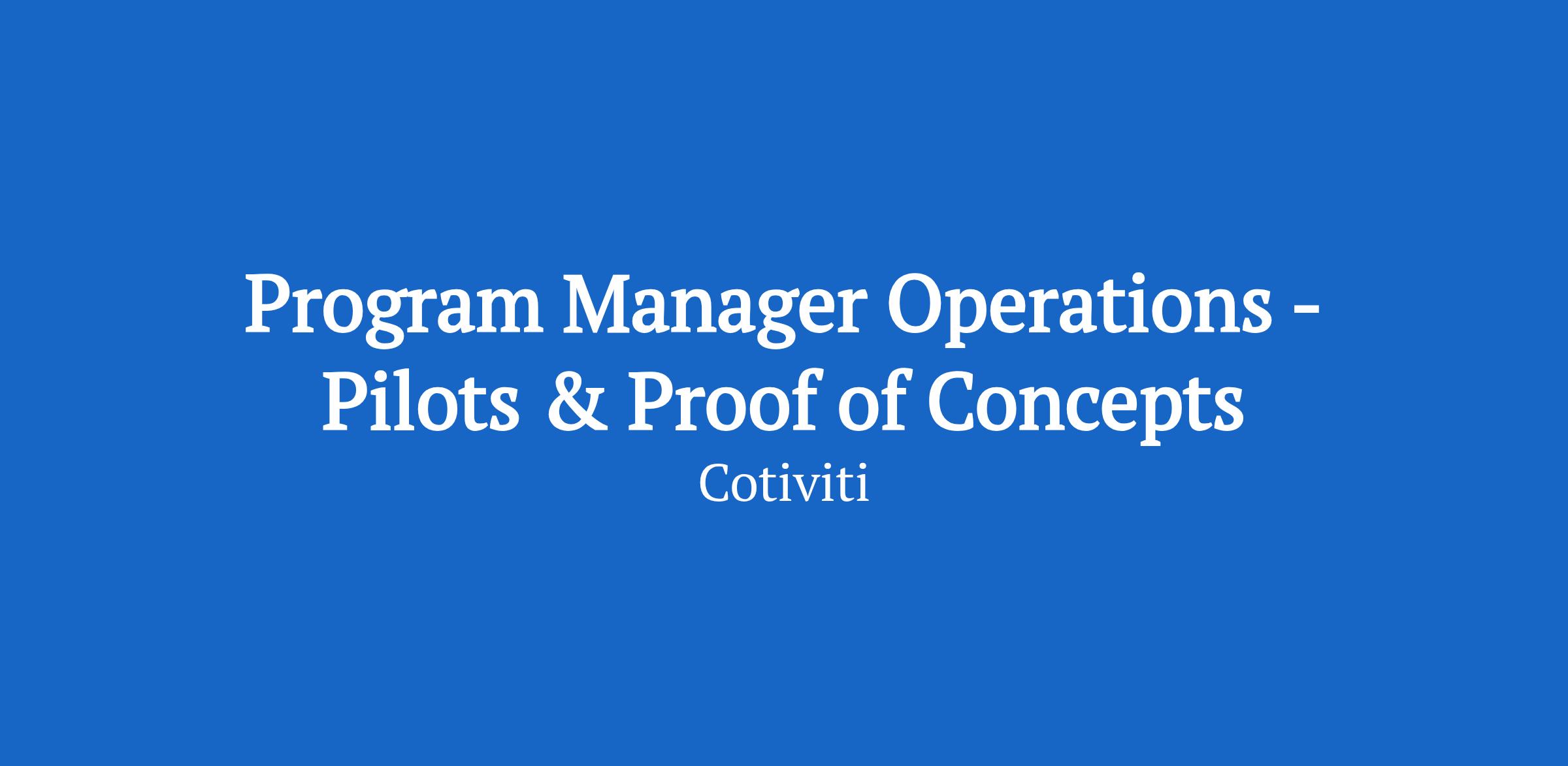 The Program Manager for Pilots & Proof of Concepts (POCs) is responsible for the end-to-end management and successful execution of all pilot programs and proof-of-concept initiatives within Cotiviti's Product organization. The Program Manager ensures pilots are delivered on time, demonstrate measureable value, and convert successfully into full production engagements.
