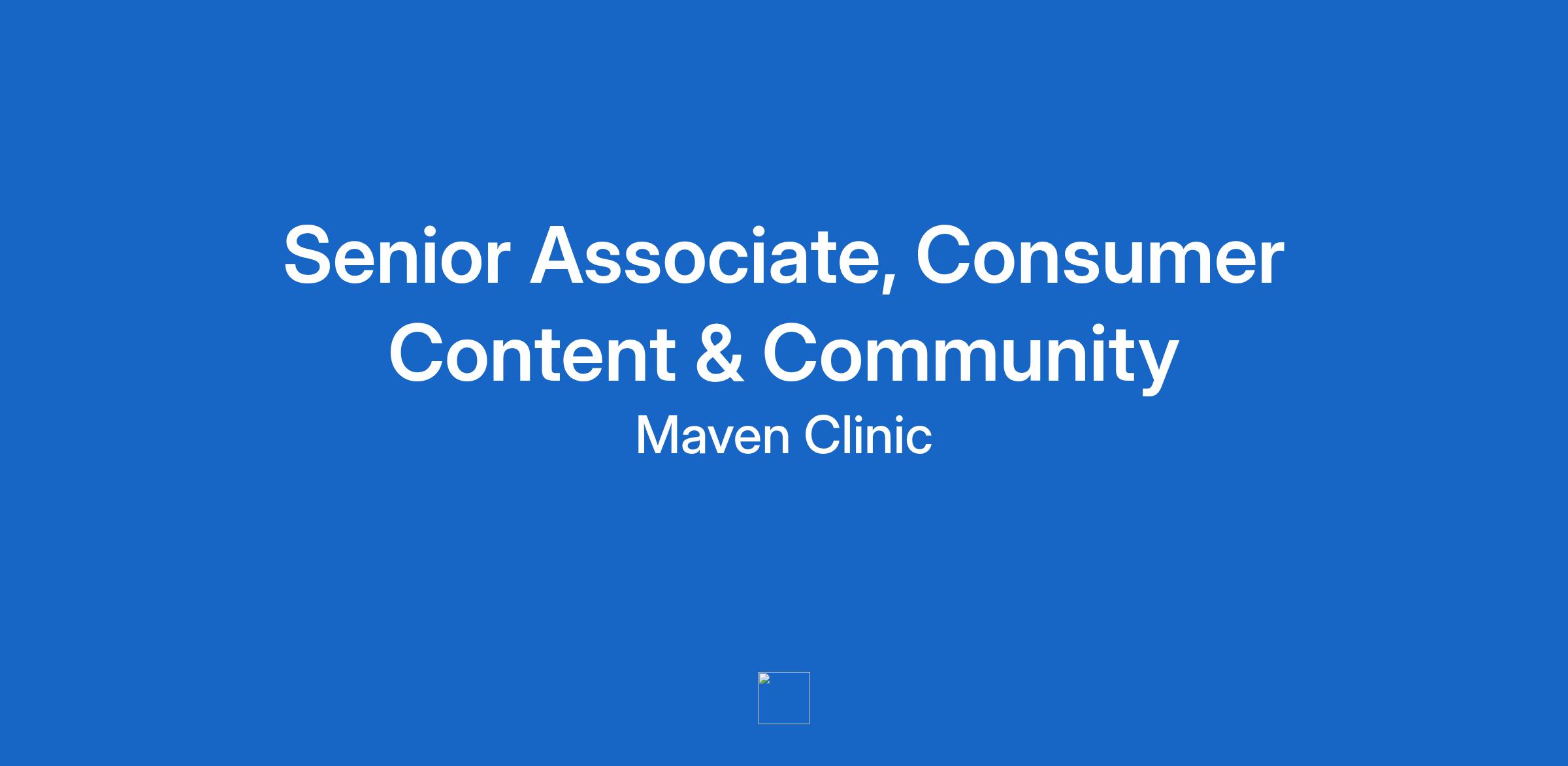 Maven is looking for a Senior Associate, Consumer Content & Community who will report to our VP of Product and Consumer Growth. As a B2B2C company, we are seeking a creative and analytical content creator who will appeal to the end-user: the person who could benefit from compassionate, committed care in reproductive and women’s health - across fertility, pregnancy, menopause, hormone and metabolic health and more.