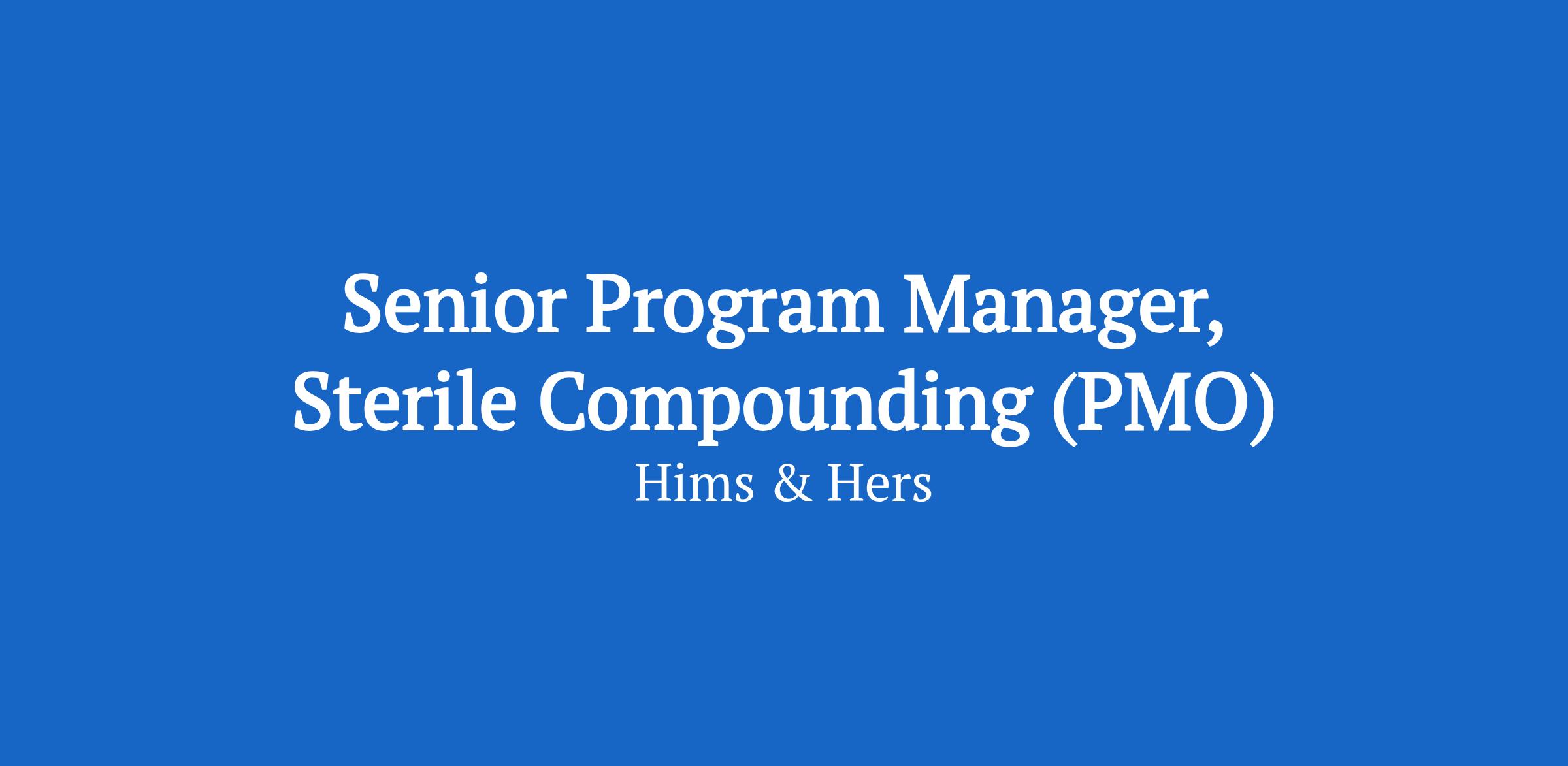 Hims & Hers is seeking a highly driven Senior Program Manager, Sterile Compounding to lead the end-to-end product development and launch processes for both (503B) (503A) sterile pharmaceutical products and facilities,. The ideal candidate will have deep experience in regulated environments, with a strong understanding of sterile manufacturing, product formulation, tech transfer, regulatory pathways, operational launch readiness, go-to-market readiness, and cross-functional collaboration. This role will drive projects from concept through R&D to launch, ensuring timelines, budgets, and quality standards are met. This role will support both the VP, Innovation and will be embedded within the fast-growing Operations & Innovation Program Management Office (PMO), reporting to the Director of Innovation Program Management (PMO).