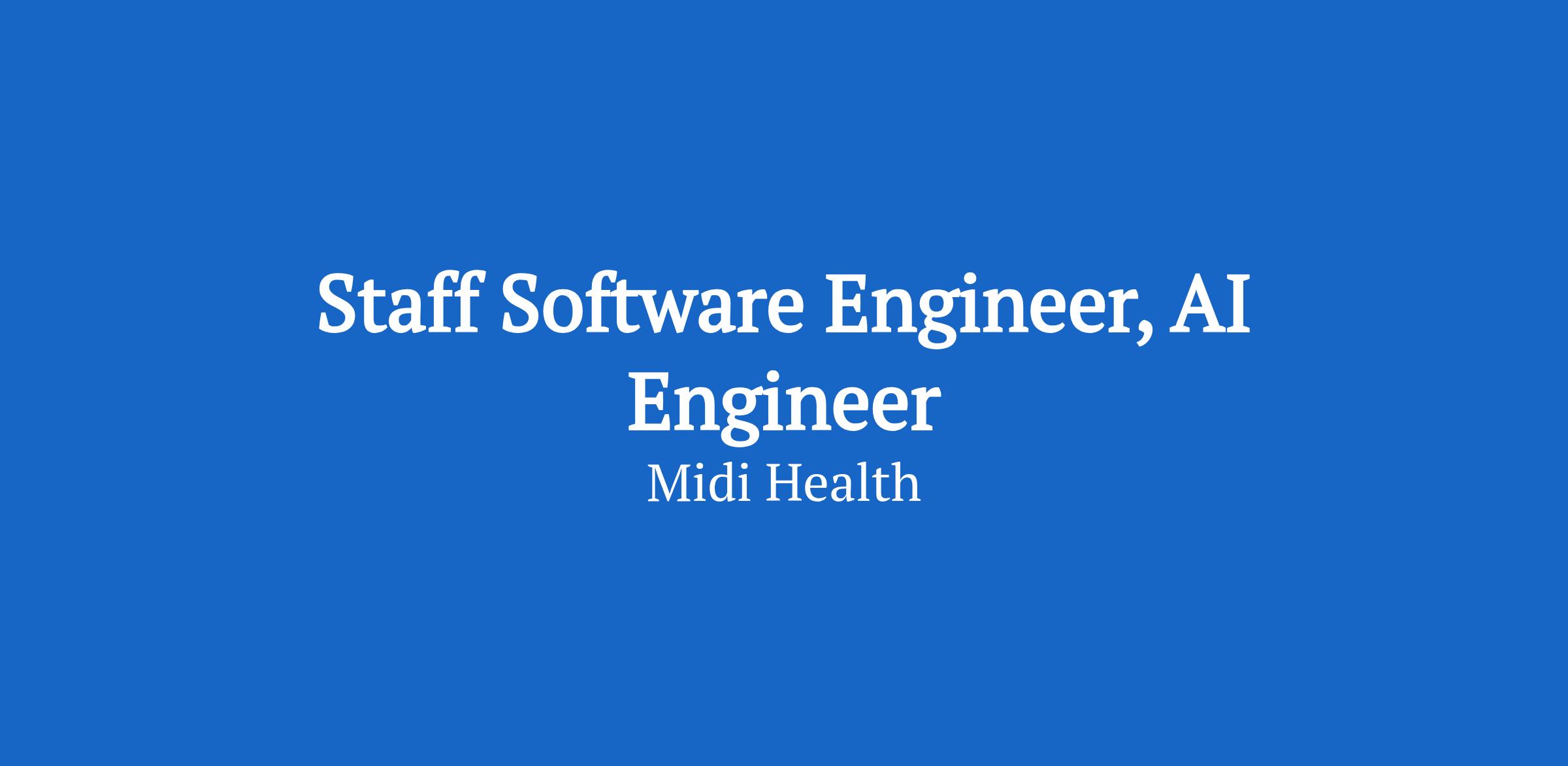 You'll set the direction for how Midi builds with AI — across clinical workflows, patient experience, and operational intelligence. You'll own the architecture of our AI systems, the evaluation practices that keep them safe, and the standards that let every engineer at Midi ship AI features confidently. This is the role for someone who wants to define what AI engineering looks like in a modern healthcare company.