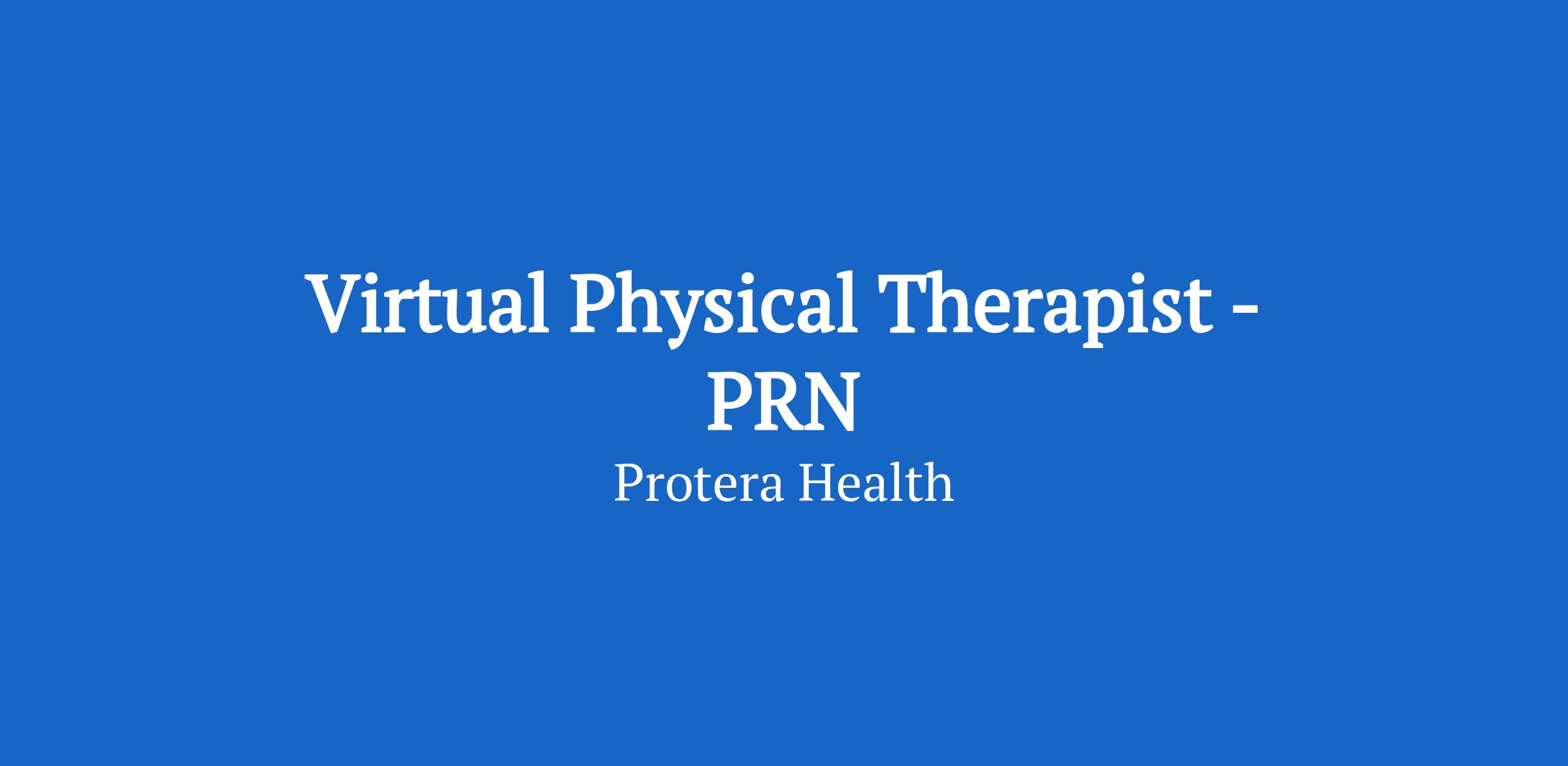 Are you a passionate, experienced Musculoskeletal (MSK) Physical Therapist (PT) eager to join an innovative healthcare startup? Protera Health is seeking a dedicated physical therapist to join our core clinical team, delivering exceptional virtual orthopedic care to patients nationwide. This role offers the unique opportunity to provide direct patient care while also contributing to a startup and shaping the future of MSK healthcare.